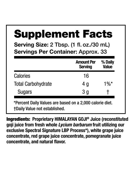 Proprietary HIMALAYAN GOJI® juice from concentrate. |