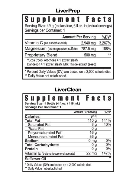 LiverPrep - Vitamin C, Magnesium sulfate, Yucca root, Artichoke leaf 4:1 extract, Dandelion leaf 4:1 extract, Milk thistle seed extract.