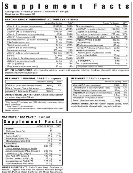 Take your 90 essential nutrients wherever you go with the On-The-Go Healthy Body Start Pak 2.0. This Pak includes vitamins, minerals, amino acids, essential fatty acids required for optimal health. The On-The-Go Healthy Body Start Pak 2.0 contains 30 packets, each includes: BTT 2.0 (4 tablets), Ultimate Mineral Caps (1 capsule), Ultimate CAL (1 capsule) and Ultimate EFA Plus (1 soft-gel).