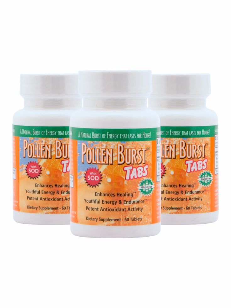 Pollen Burst Tabs (formerly ProJoba Polbax) contains natural organic hypoallergenic nutrient extracts from pure flower pollen. Pollen Burst Tabs promote natural energy (SOD) and endurance without caffeine.
