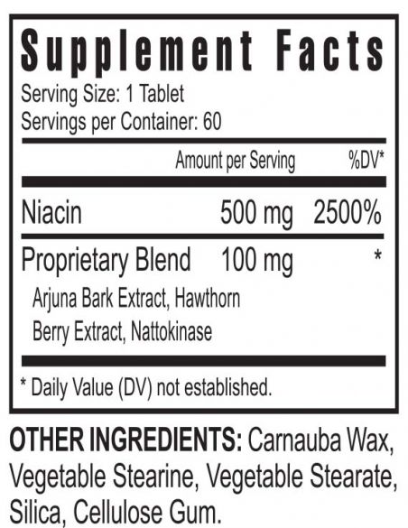 Niacin, Proprietary Blend (Arjuna Bark Extract, Hawthorn Berry Extract, Nattokinase), Carnauba Wax, Vegetable Stearine, Vegetable Stearate, Silica, Cellulose Gum.